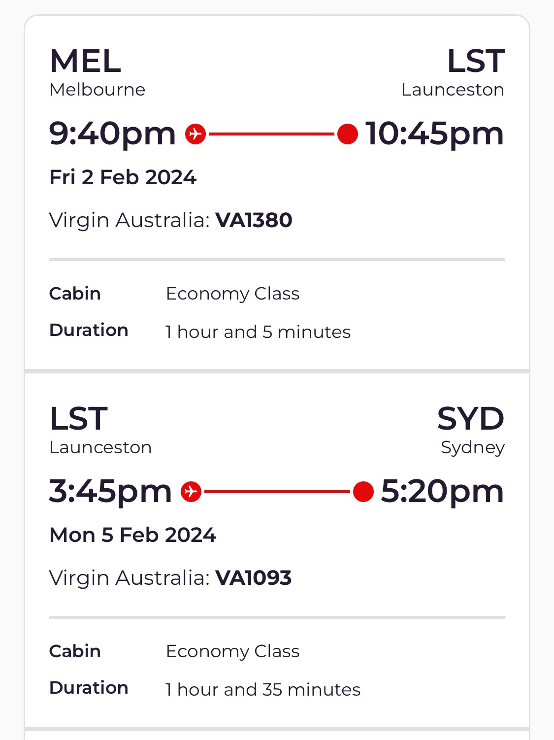 Your Melbourne to Sydney flight will now take 3 days, via Launceston.